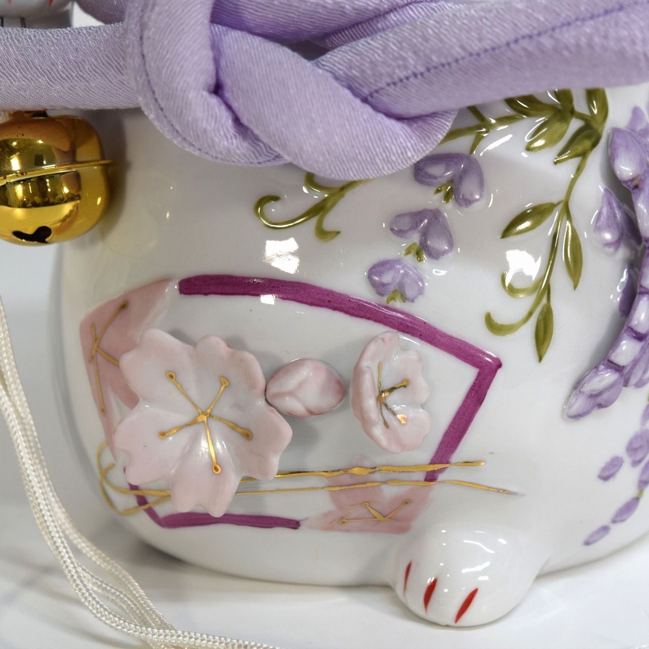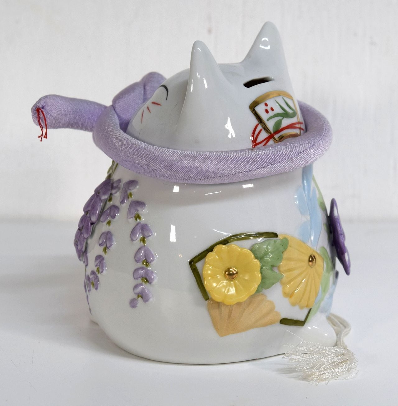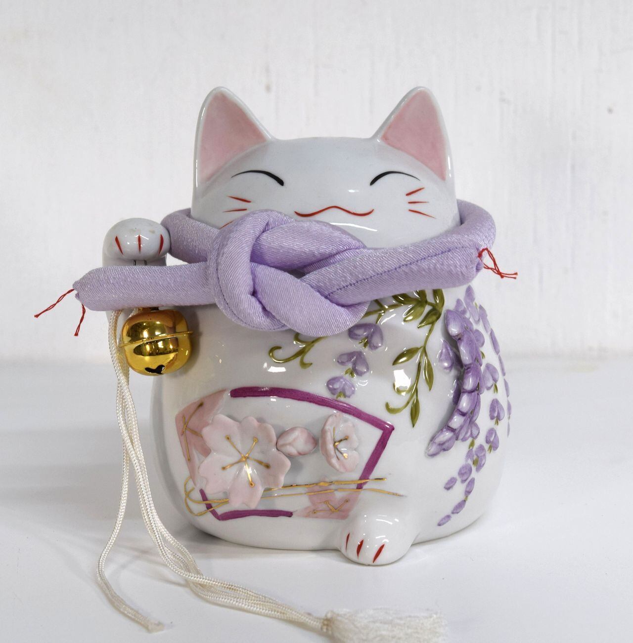 • 創作招き猫 「織」サインあり 四季草花、雲文、金鈴、モザイク前掛け 創作招き猫 「織」サインあり 四季草花、雲文、金鈴、モザイク前掛け ¥8,000
