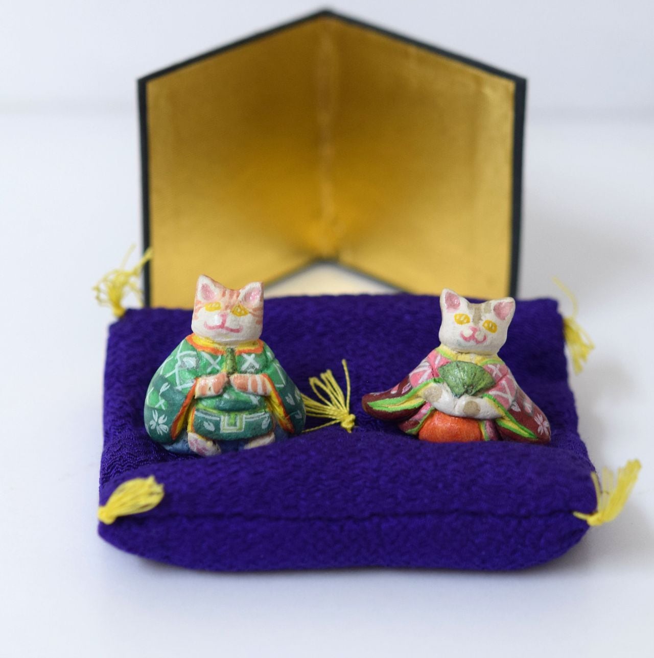 ヴィンテージ 猫のミニ雛 座布団、屏風、箱付き お内裏様とお雛様です