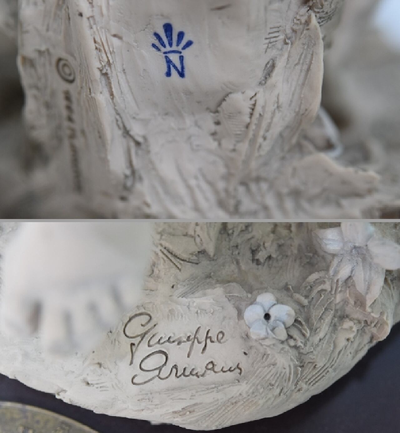 ジュゼッペ・アルマーニの陶印、フローレンス社の刻印、作品のタイトルが記された銘板がございます。