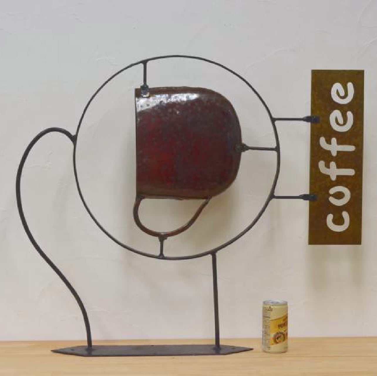 珈琲ショップ壁付け看板 アイアン+銅 店舗什器