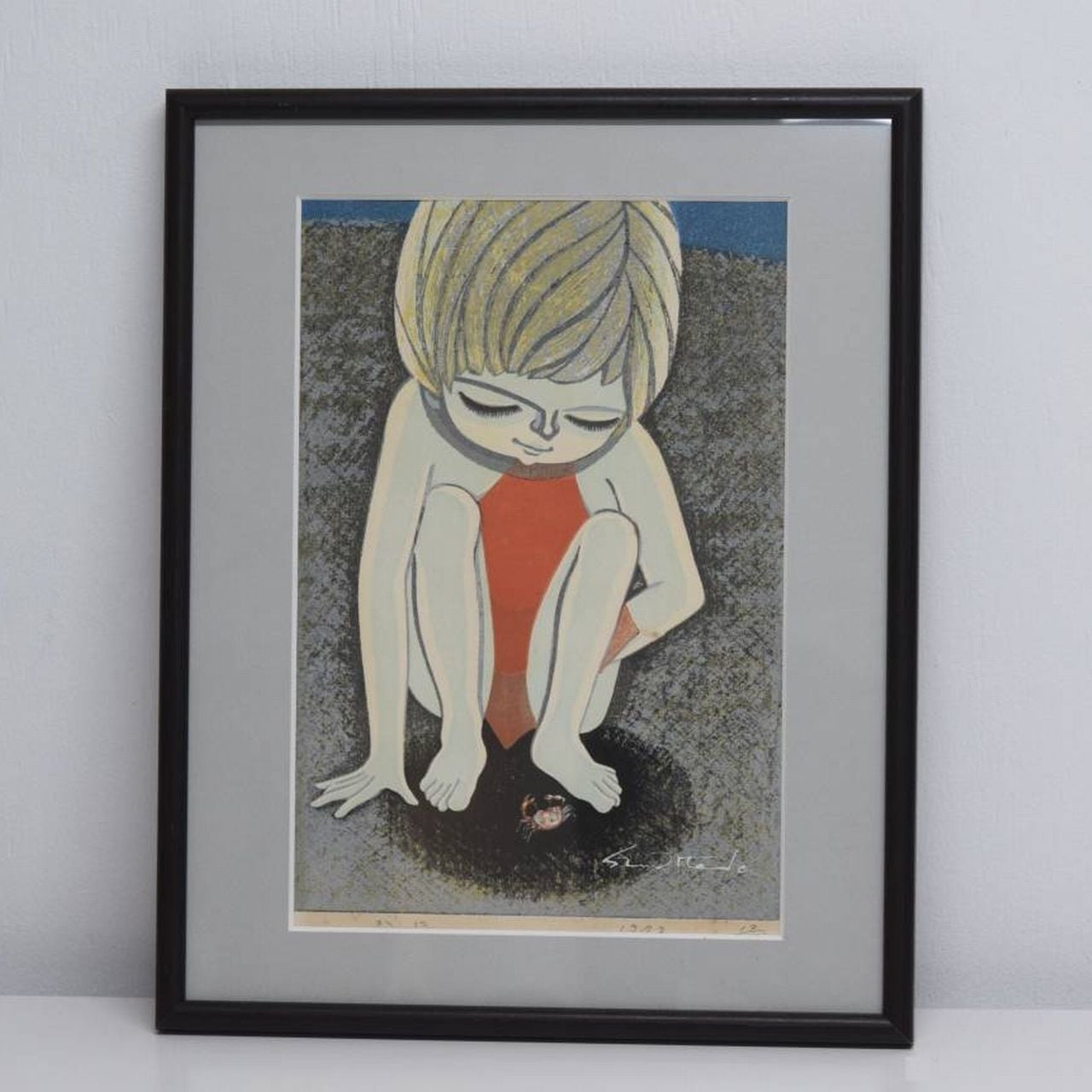池田修三 オリジナル版画 「かに」直筆サイン入り 額装品