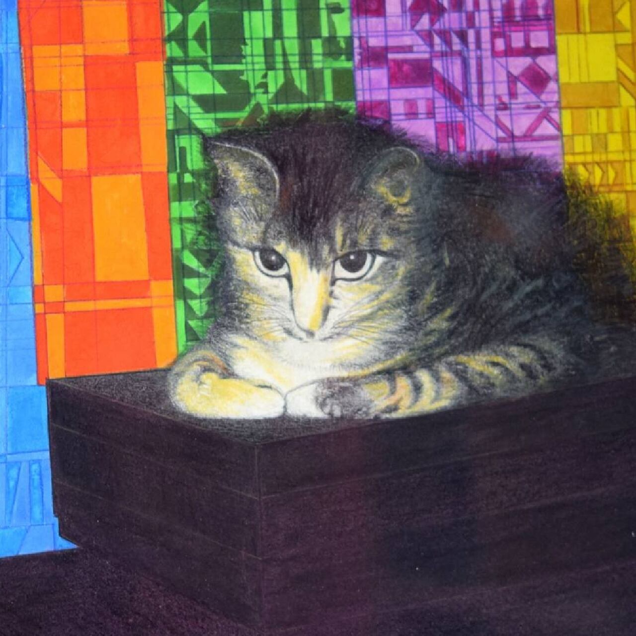 沢登みよじ 越前和紙 油彩 テキスタイルと猫(仮題)