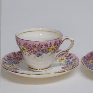 イングランド FOLEY BONE CHINA デミタスC&S2客 ヴィンテージ ハンドペイント