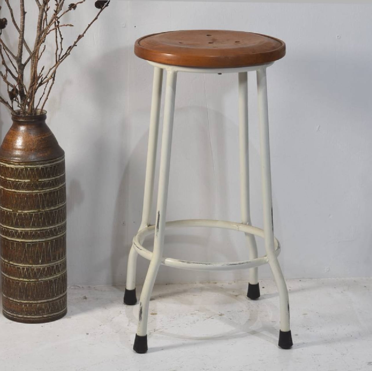 old maison オールドメゾン チーク材座面、アイアン脚 スツール①