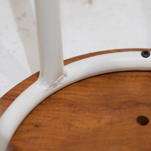 無垢のチーク材座面とアイアン脚で構成され、使い込むほどに味わいを増すスツールです。