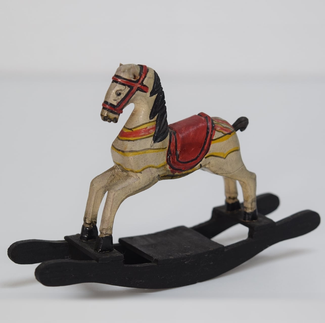 古い木馬 小さなロッキングホース 木彫り ハンドペイント