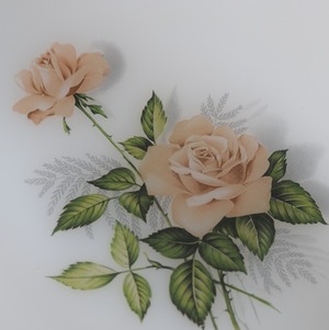 ミルクガラスに淡いピンクの薔薇文様が優しい雰囲気のプレートです。