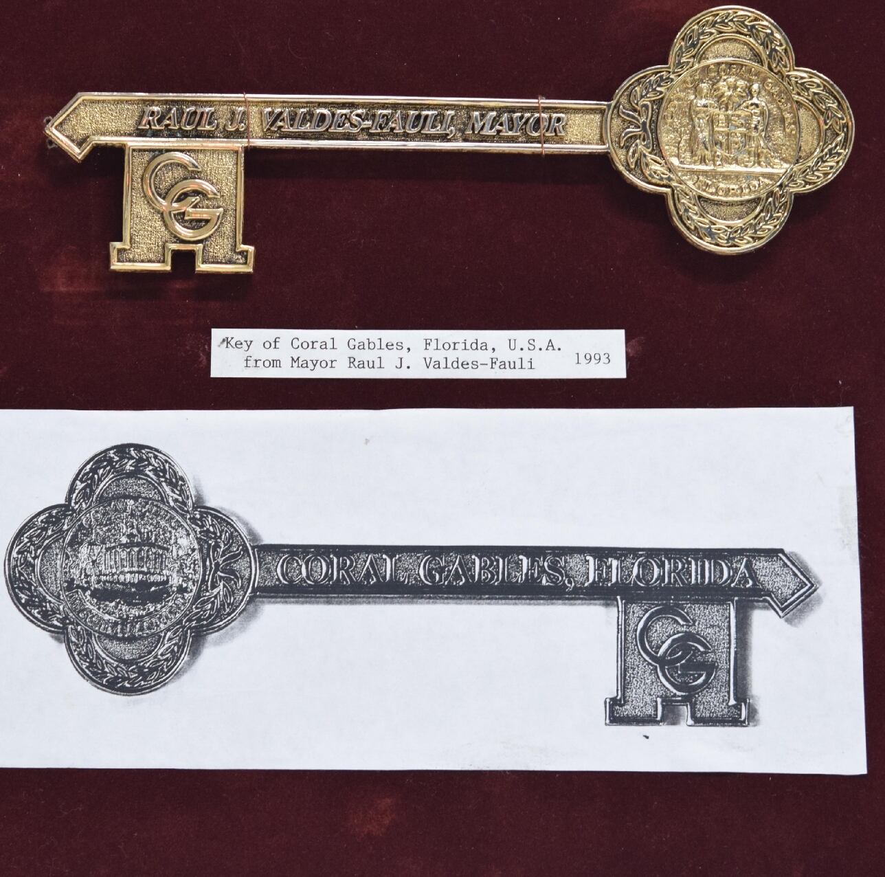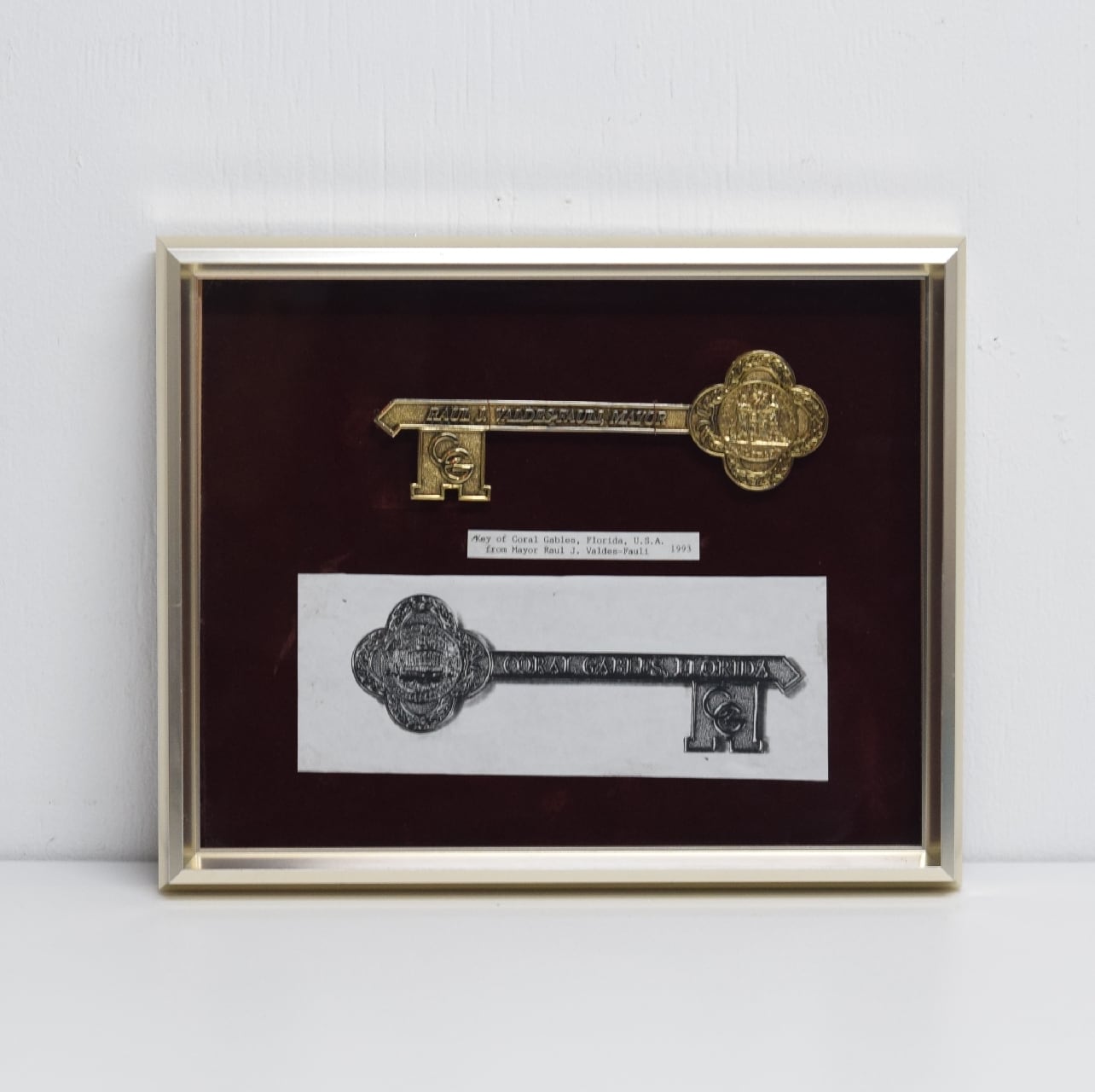 コーラル・ゲイブルス市から送られた市の鍵を額装した品です。