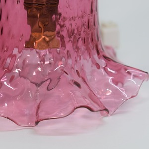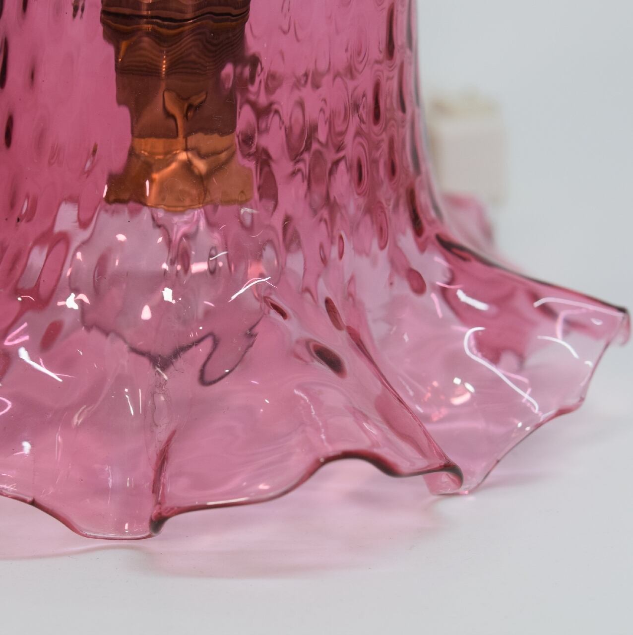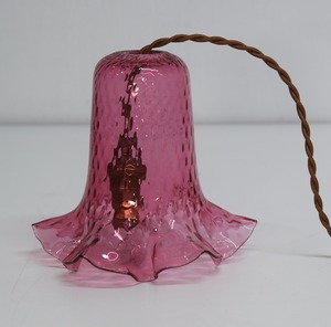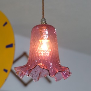 フリルレースのガラス電笠 ピンクのランプシェード ヴィンテージ 吊り照明