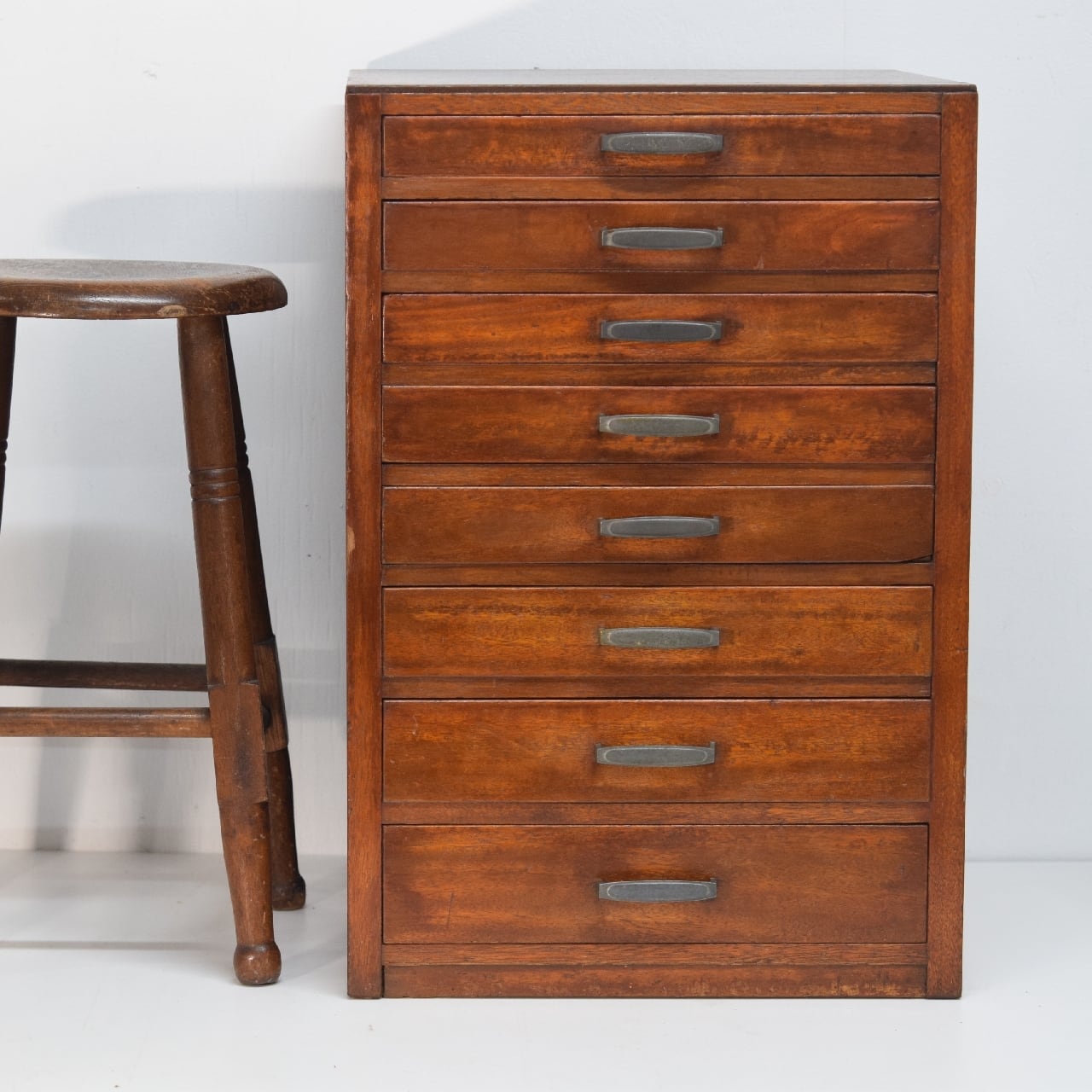 古家具 昭和の小家具 木製8杯引き出し 書類、カトラリー、道具の整理にも