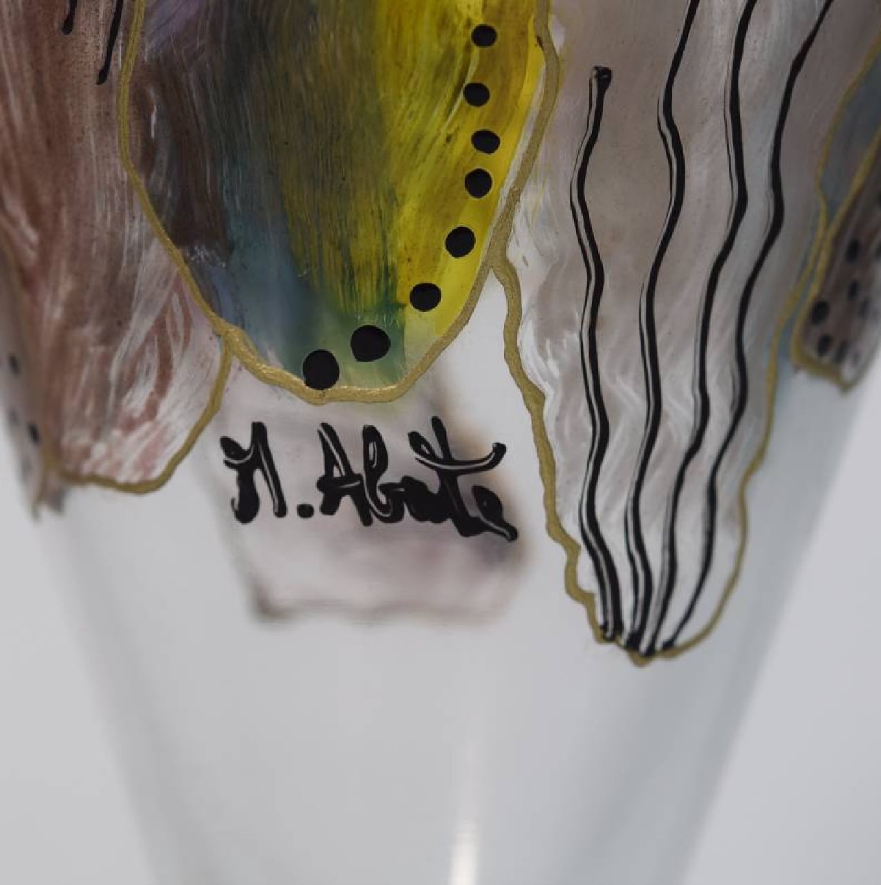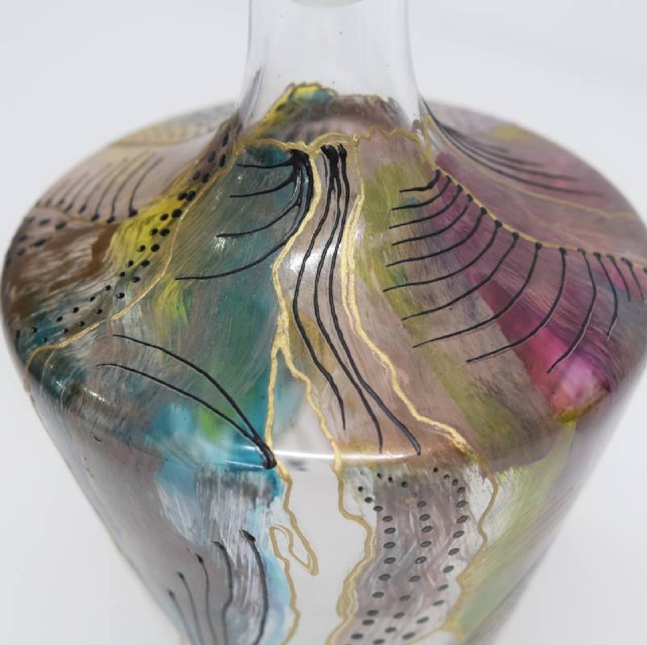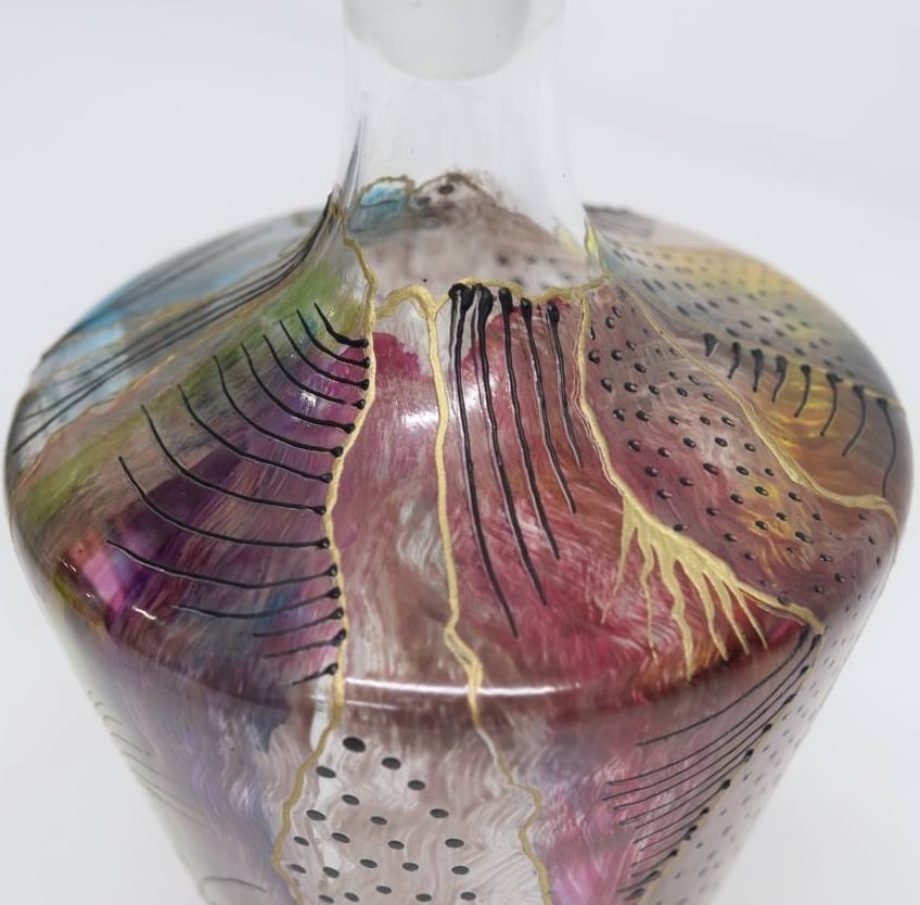 イタリア工芸硝子 作家もの ハンドペイント デキャンタ サイン有り