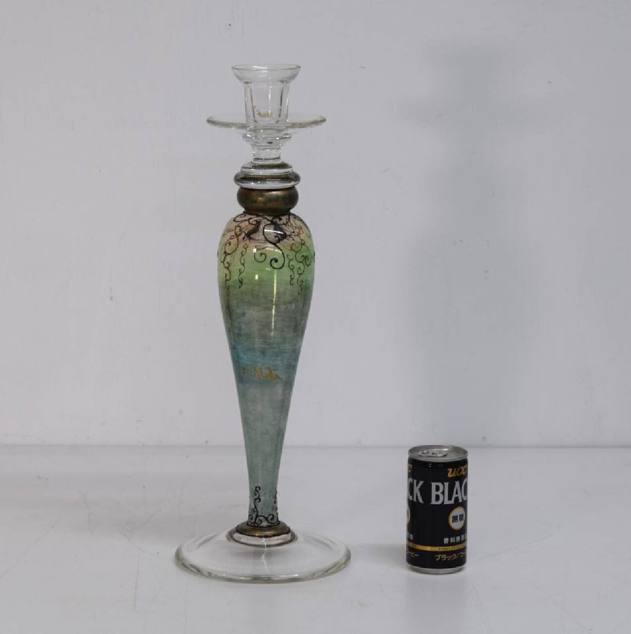 イタリア工芸硝子 作家もの ハンドペイント 美しい大型キャンドルスタンド