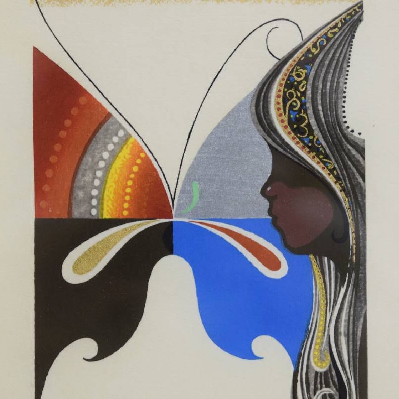 木版画 中山正 新潟市の版画家 蝶と女 112/250 版上サインあり