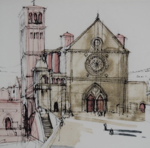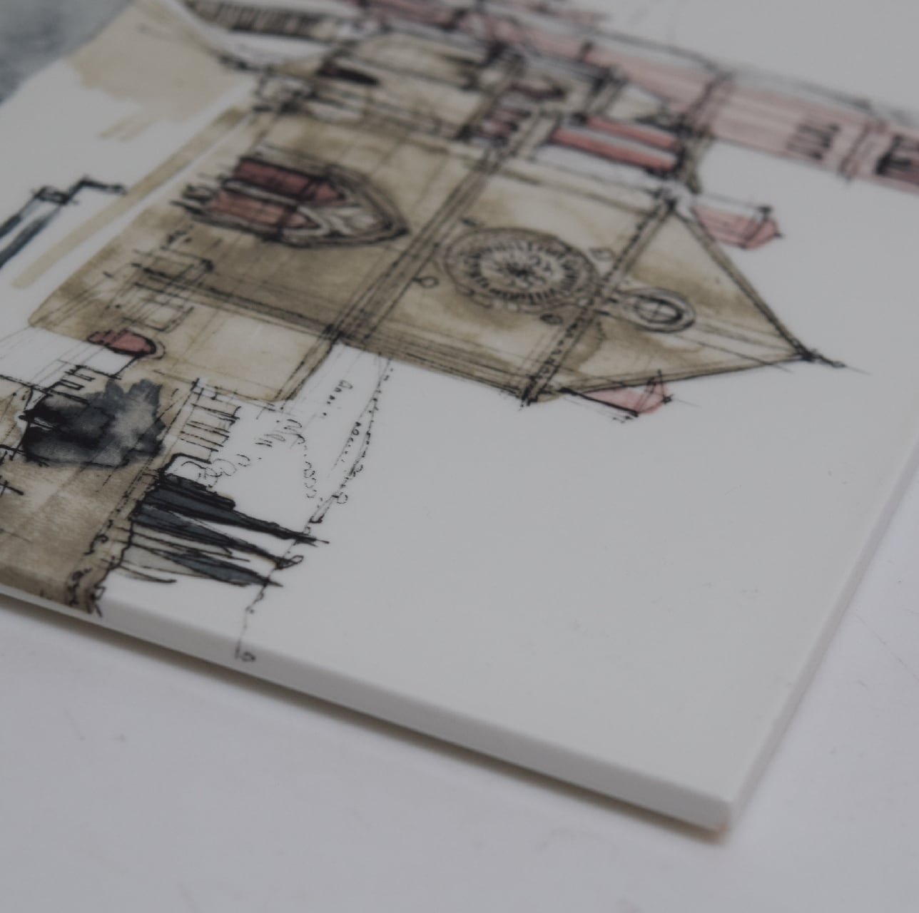 小磯良平の神戸の協会を描いた作品をモチーフにしたナルミ製陶の陶板です。