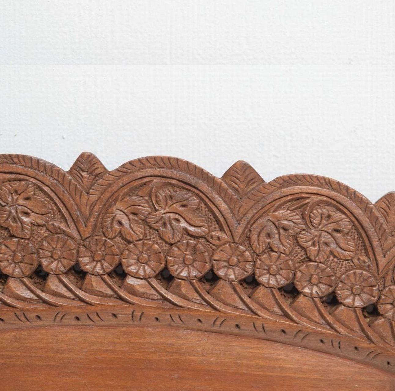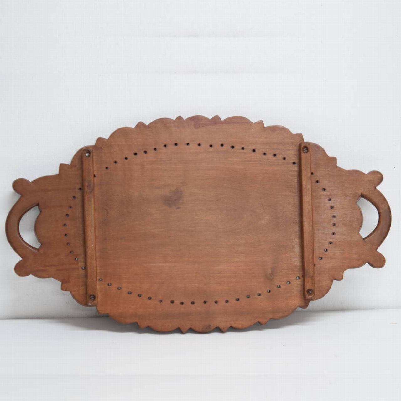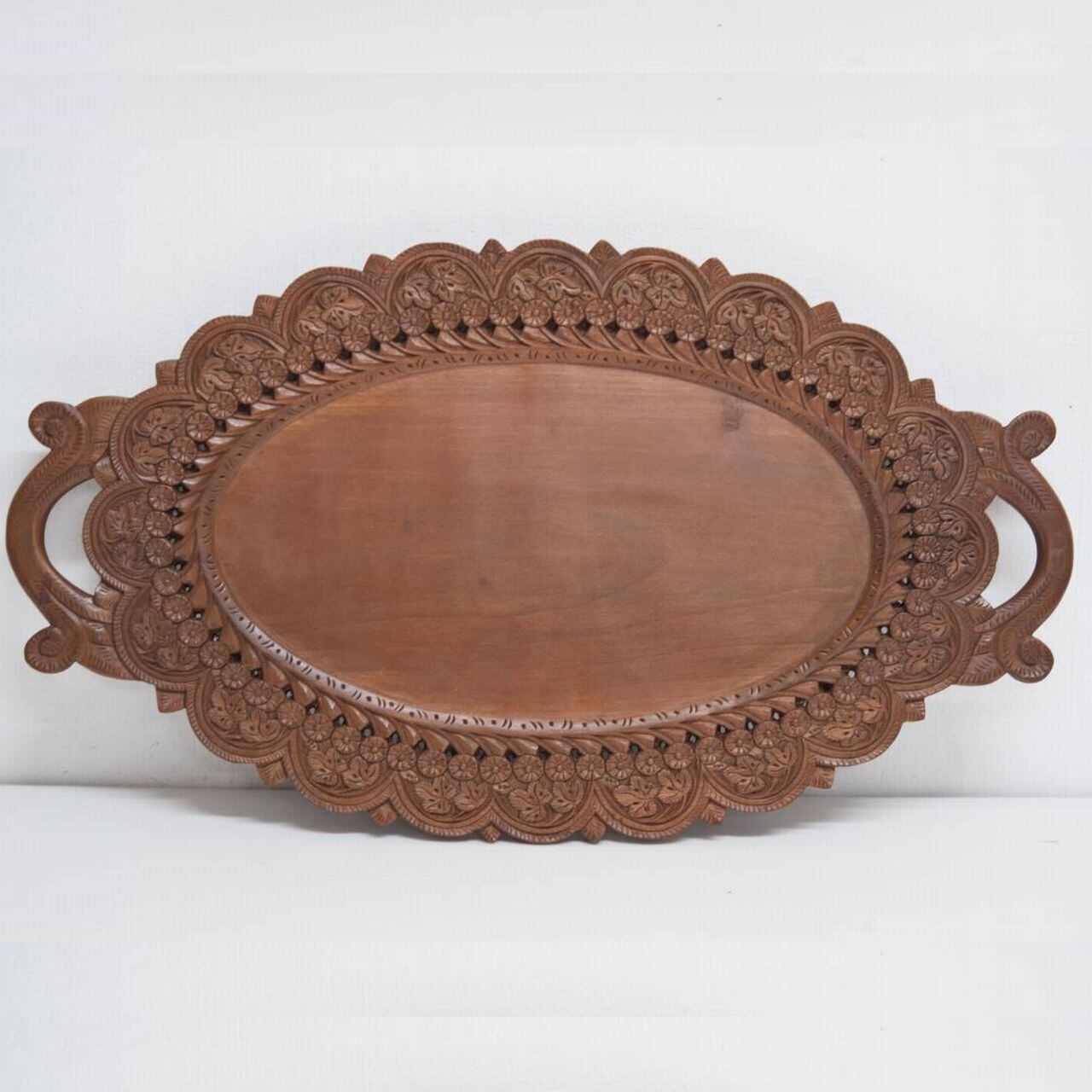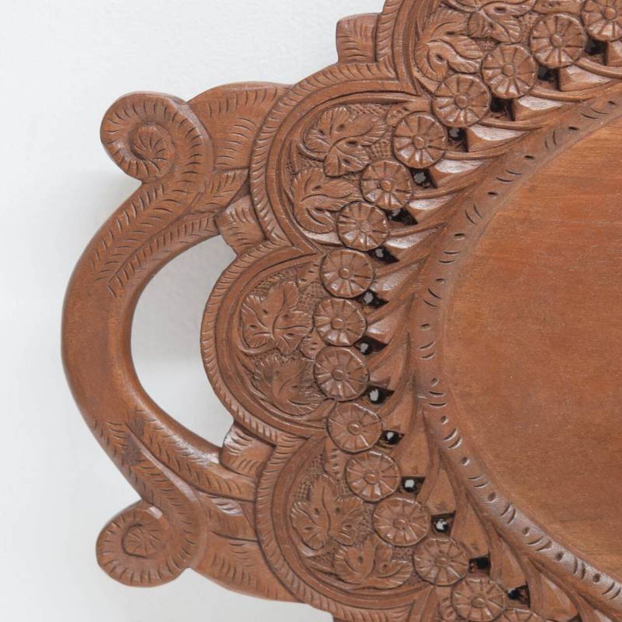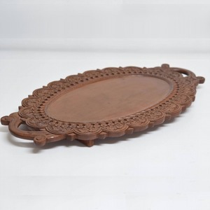 インド製 木製盆 彫刻トレイ 植物文様 ハンドメイド木彫りトレイ
