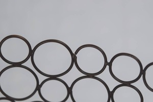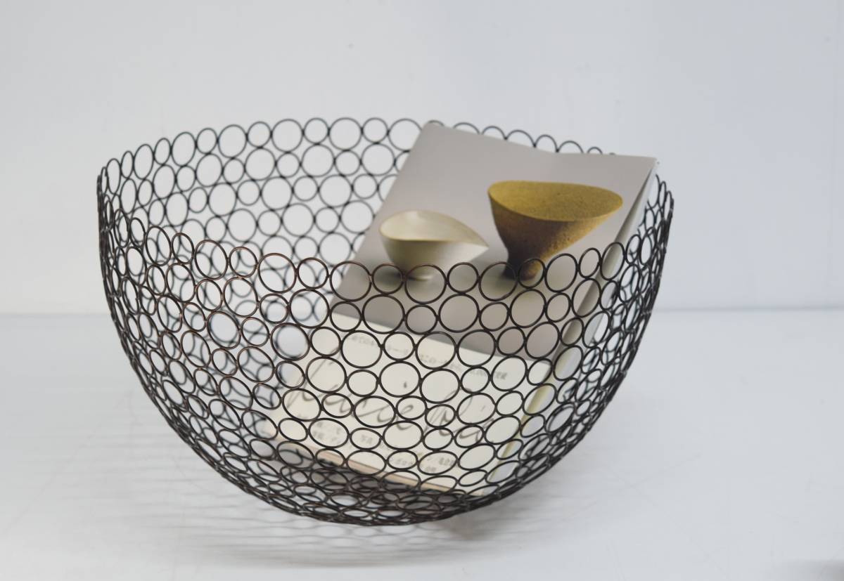 大小の鉄のリングを溶接でつなげたバスケットです。
