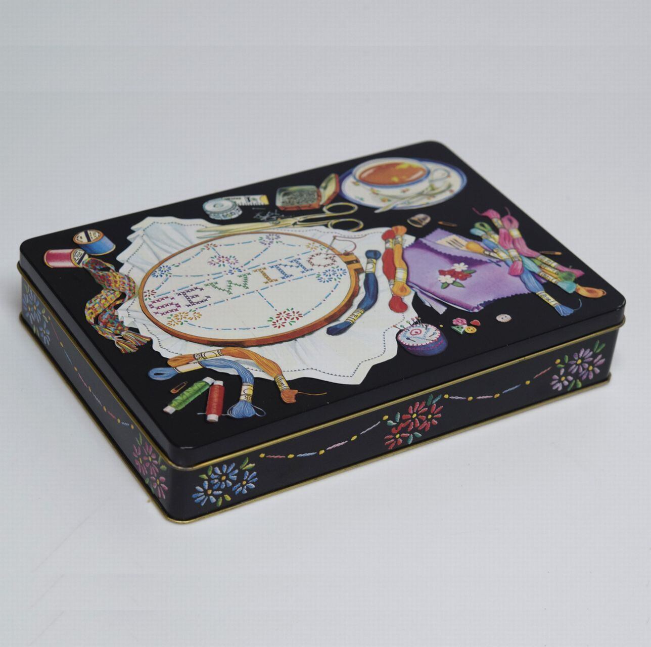 ヴィンテージ 1983年 イギリスのお菓子缶 ティン缶 SEWING 刺繍文様