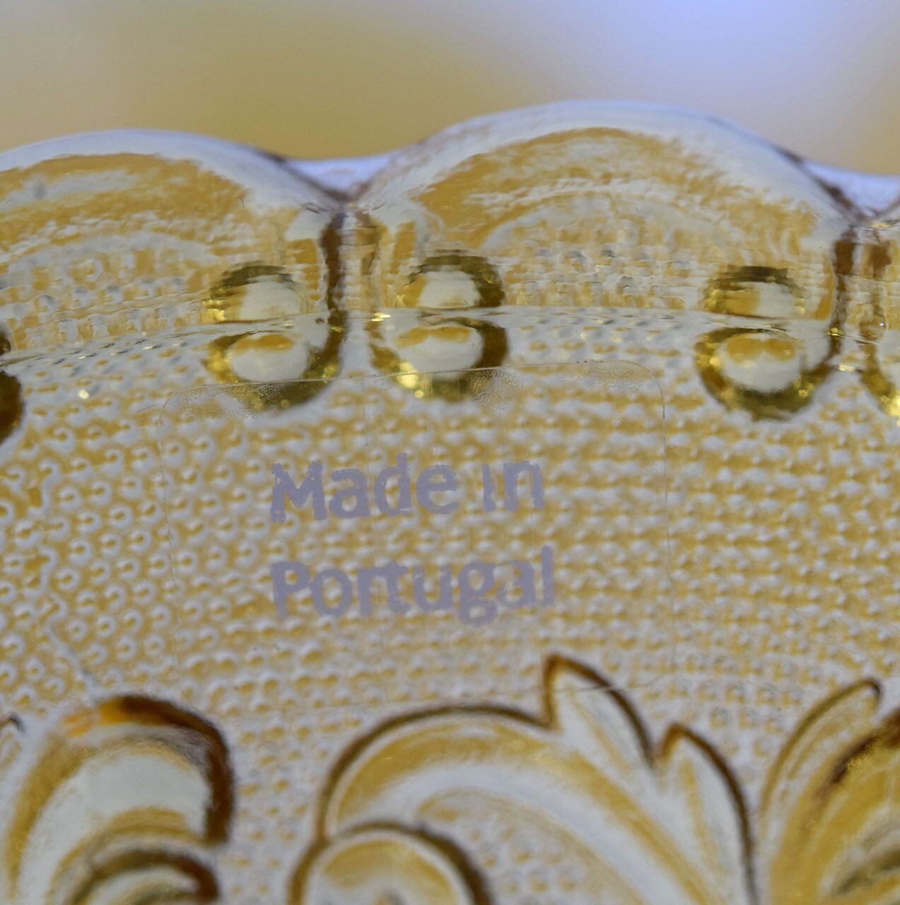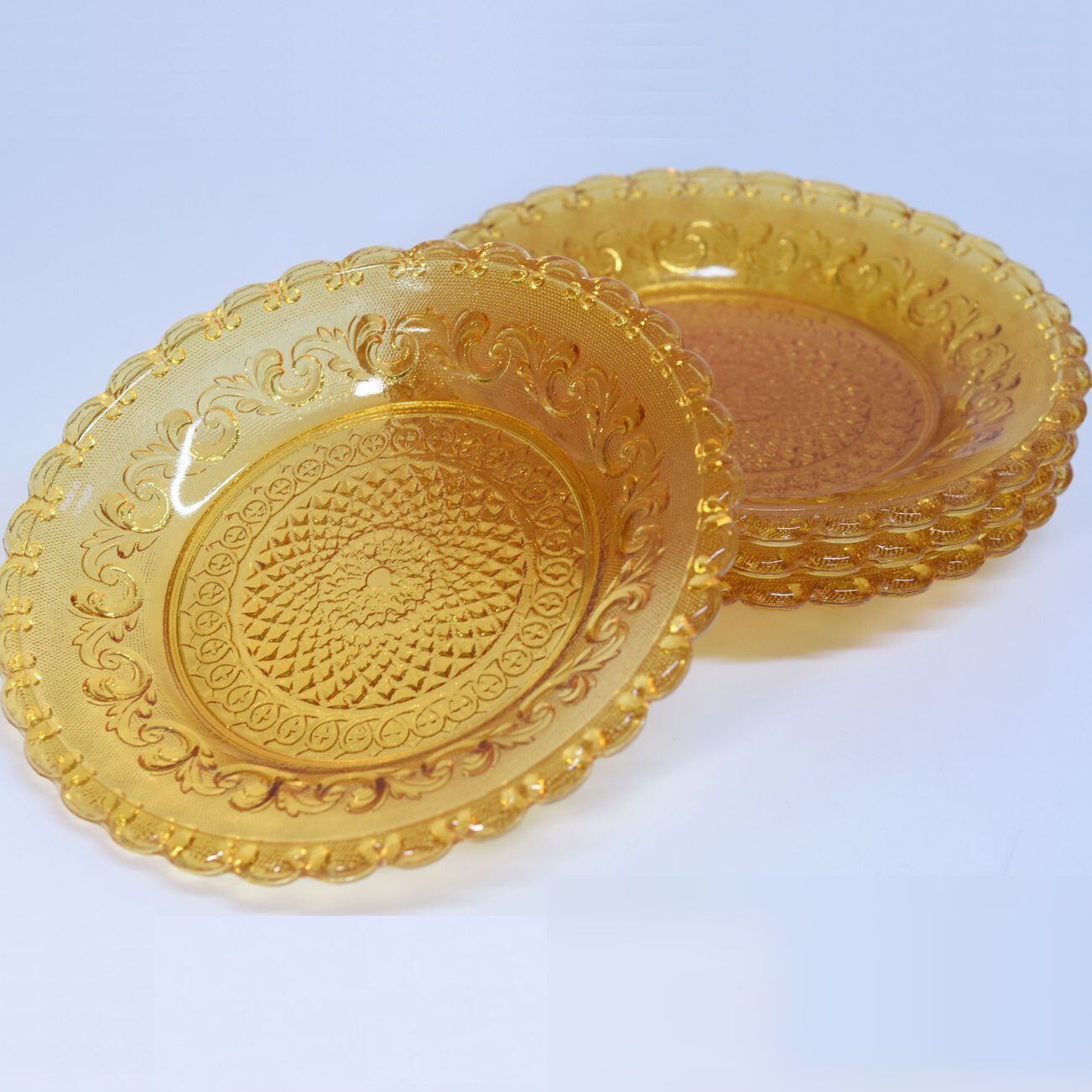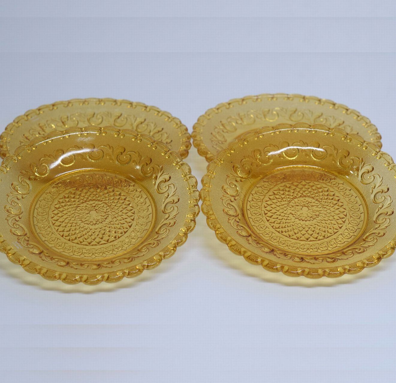 ポルトガル製 アンバーカラー プレス硝子 21cmプレート4客 デザートプレート