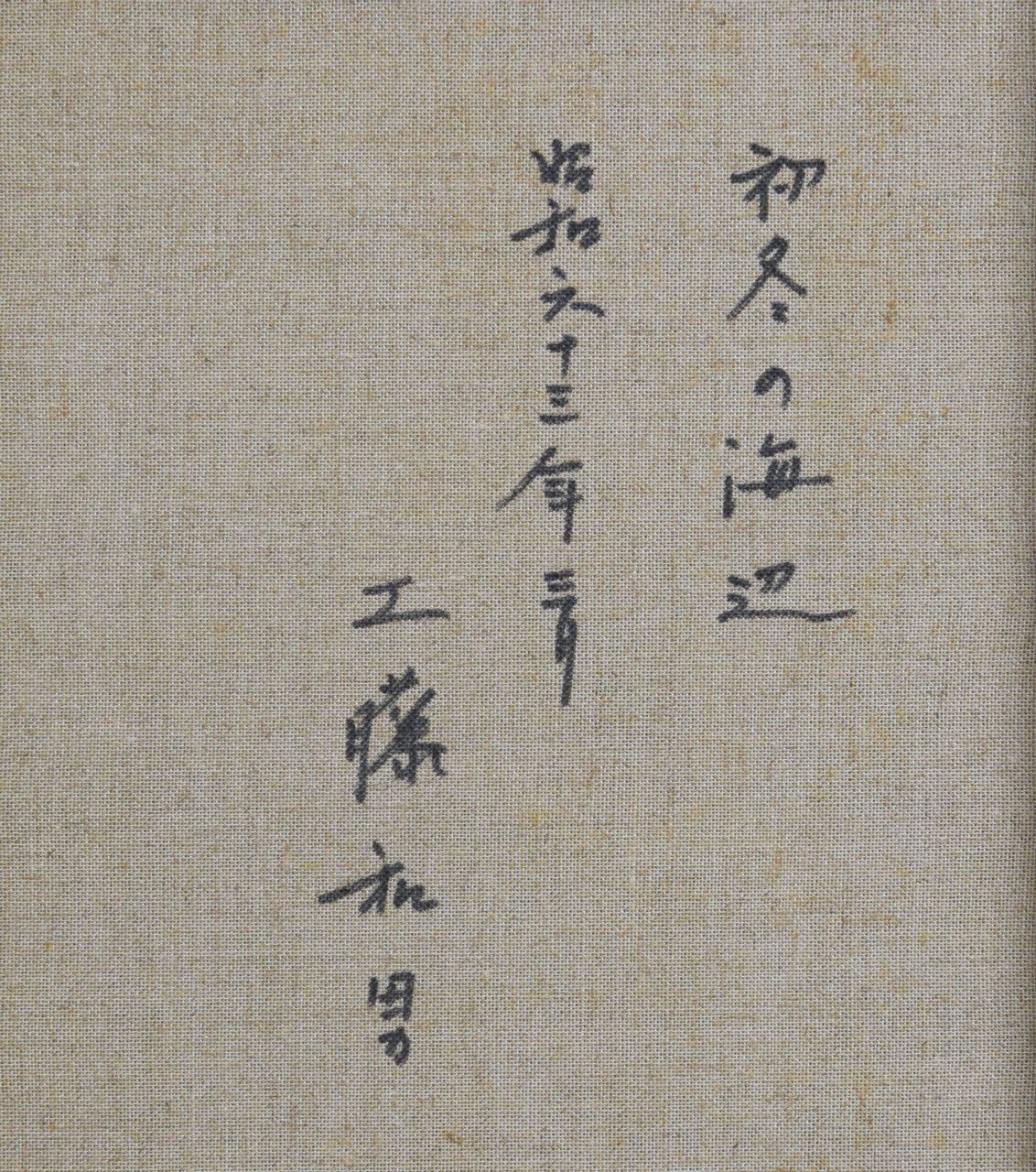 油彩 創元会会長 日展評議員 工藤和男 「初冬の海辺」直筆サイン