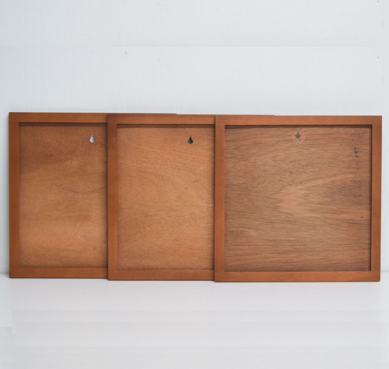 上部になみだ型の壁掛け用の穴があり、裏面にマークがあります。