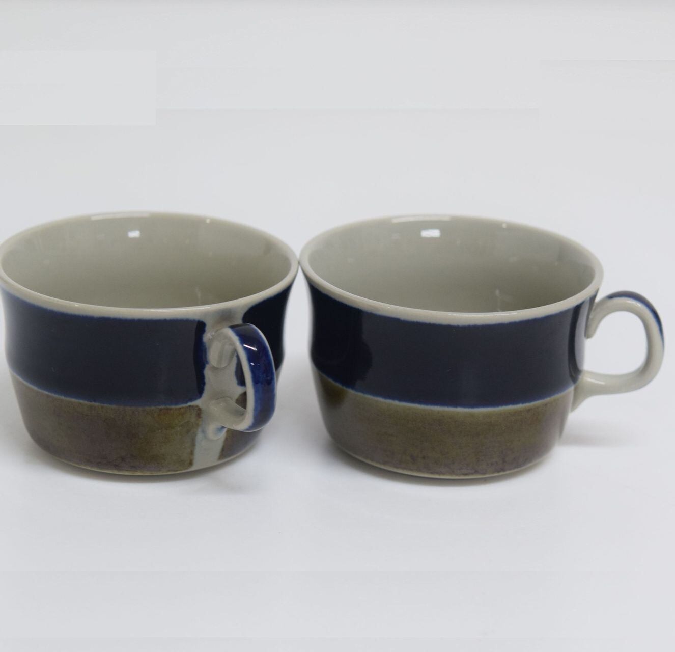 青とオリーブグリーンの二色はハンドペイントで描かれています。