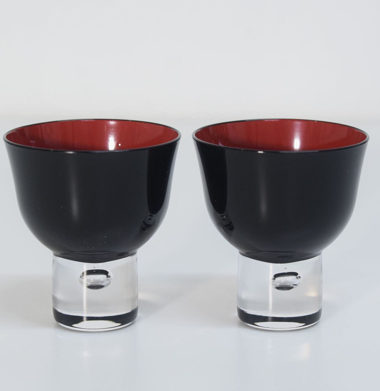 落ち着いた漆の朱赤と黒のボウルにステムの気泡が遊び心を感じさせます。
