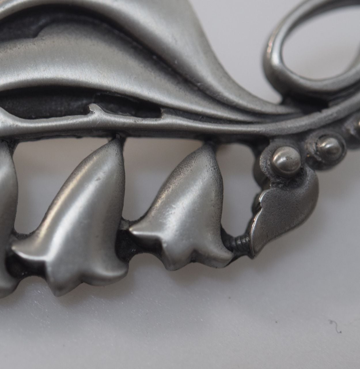 北欧雑貨ファン必見!ヴィンテージのR.TENNESMED SWEDISH PEWTER(スウェーデンのブリキ細工)から、鈴蘭のブローチが入荷しました。手作りの温かみが感じられるヴィンテージ雑貨は、他では手に入らないデザインが多く、コレクターにも大変人気です。そしてこのブローチは、繊細な鈴蘭の花をモチーフにしたもの。重ねた花びらと、花のしっかりとした輪郭が美しく、存在感があります。シックな装いにも合わせやすい、高級感あふれるアクセサリーです。普段使いはもちろん、特別な場にもおすすめです。