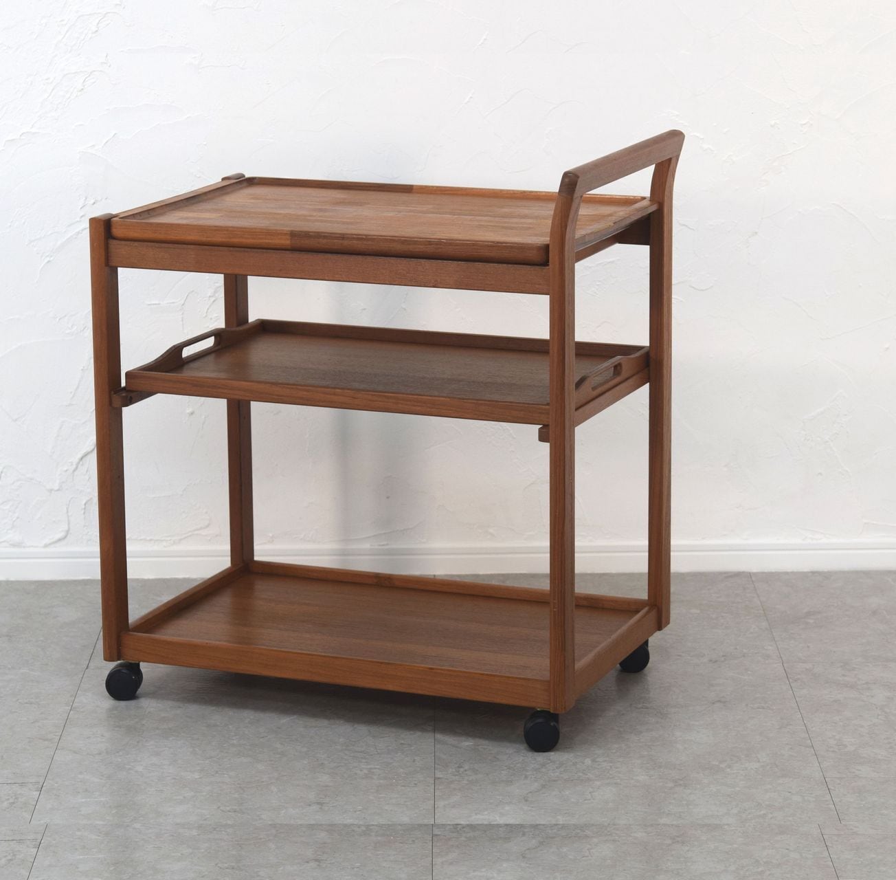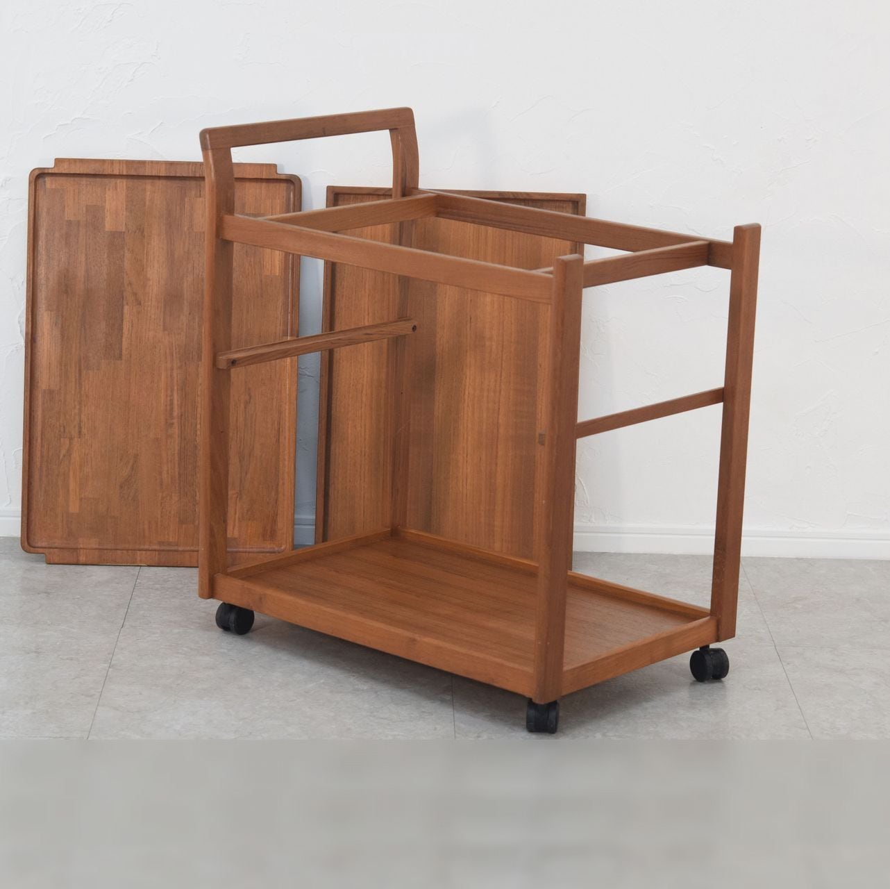 ヴィンテージ チーク材のワゴン シンプルスタイル チーク材トレイ トロリー