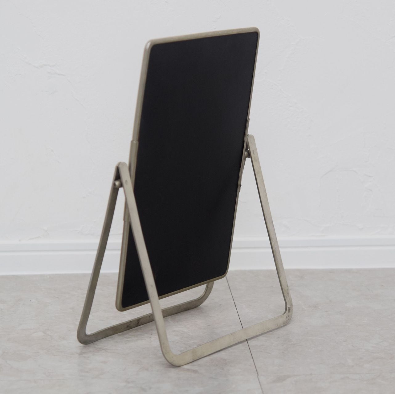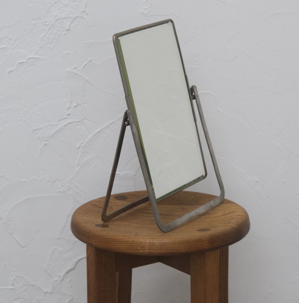 ヴィンテージ 置き鏡 スタンドミラー 卓上ミラー 面取り硝子 ステンレスフレーム インダストリアル