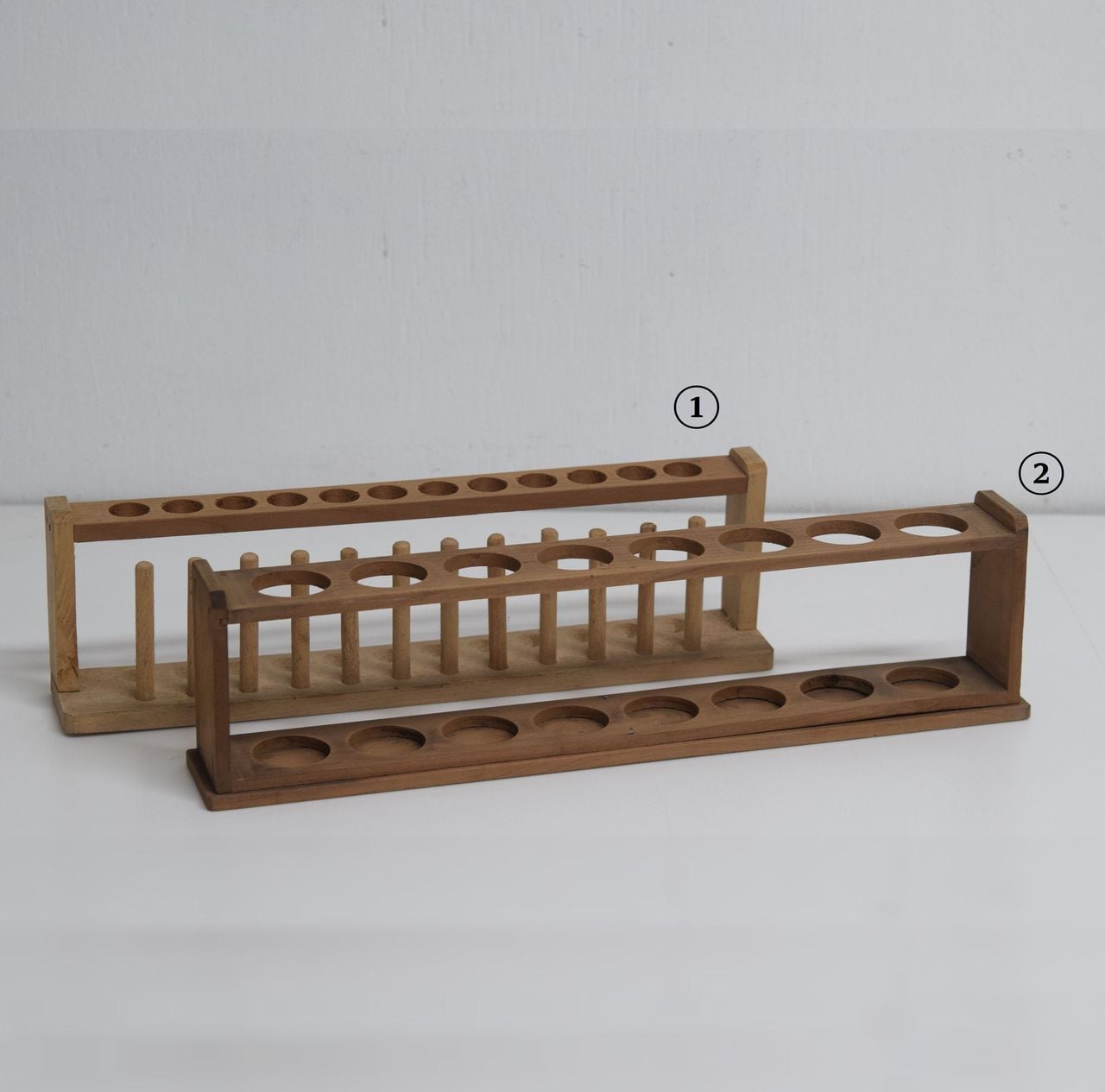 昭和雑貨 古い木味 木製製試験管立て2台 理科実験 花入れ インテリアに フラワーアレンジに