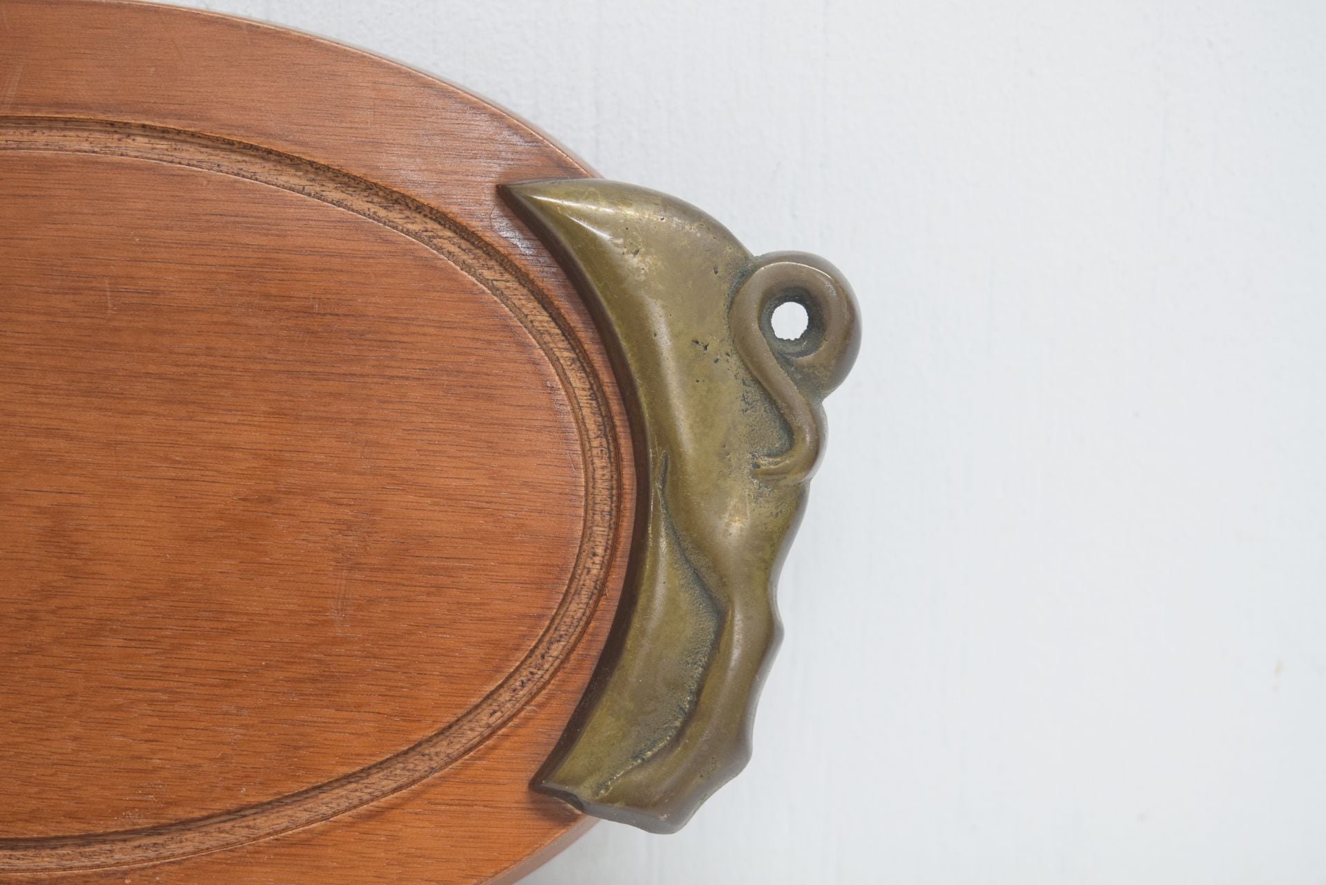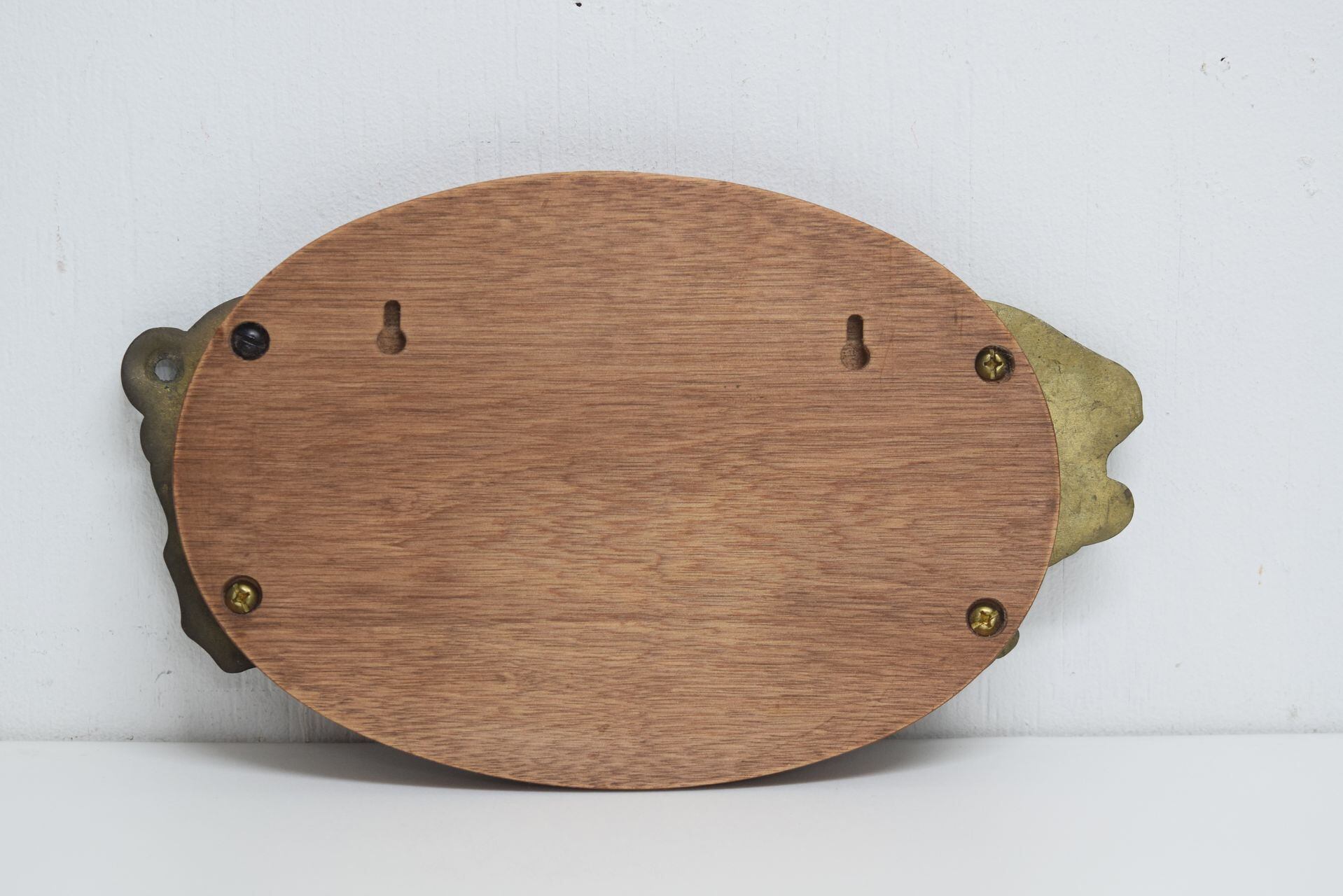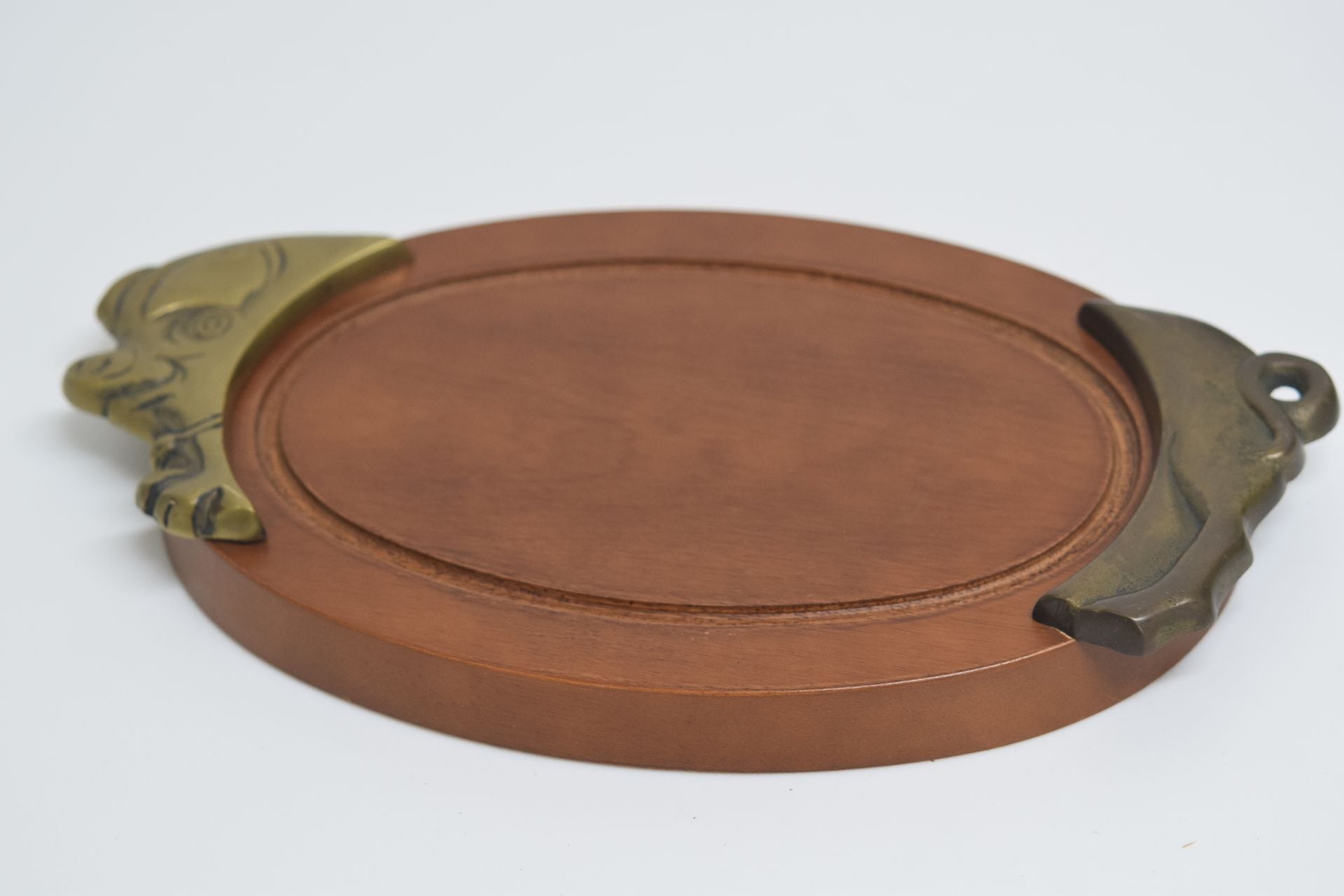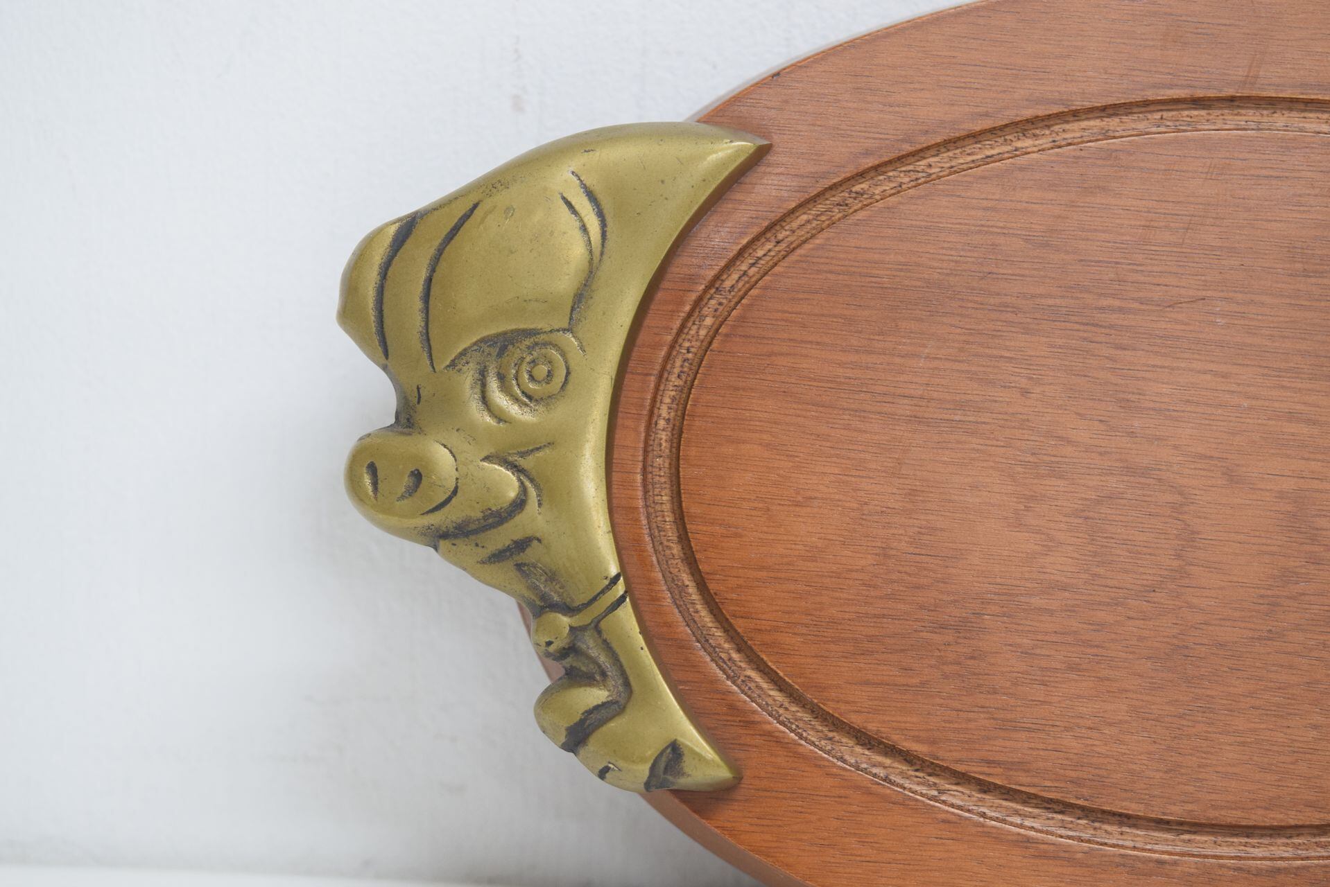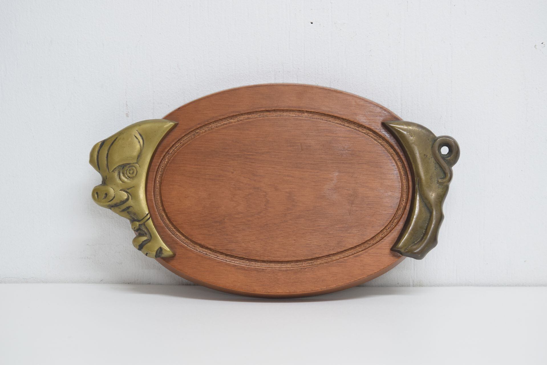 ステーキプレート置台型 木製壁掛け 真鍮の豚装飾付き ヴィンテージ