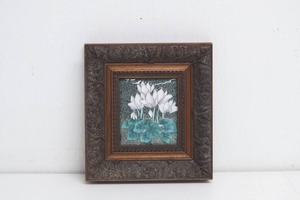 アンティーク額 七宝焼 白いシクラメン 壁飾り 銀線七宝 デコラティブ インテリア