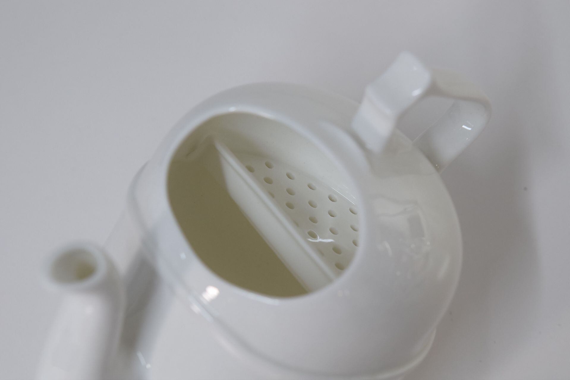 ポット内は2層に分かれており、手前に茶葉を入れて立ち上げるとお茶がポットの下部に溜まります。