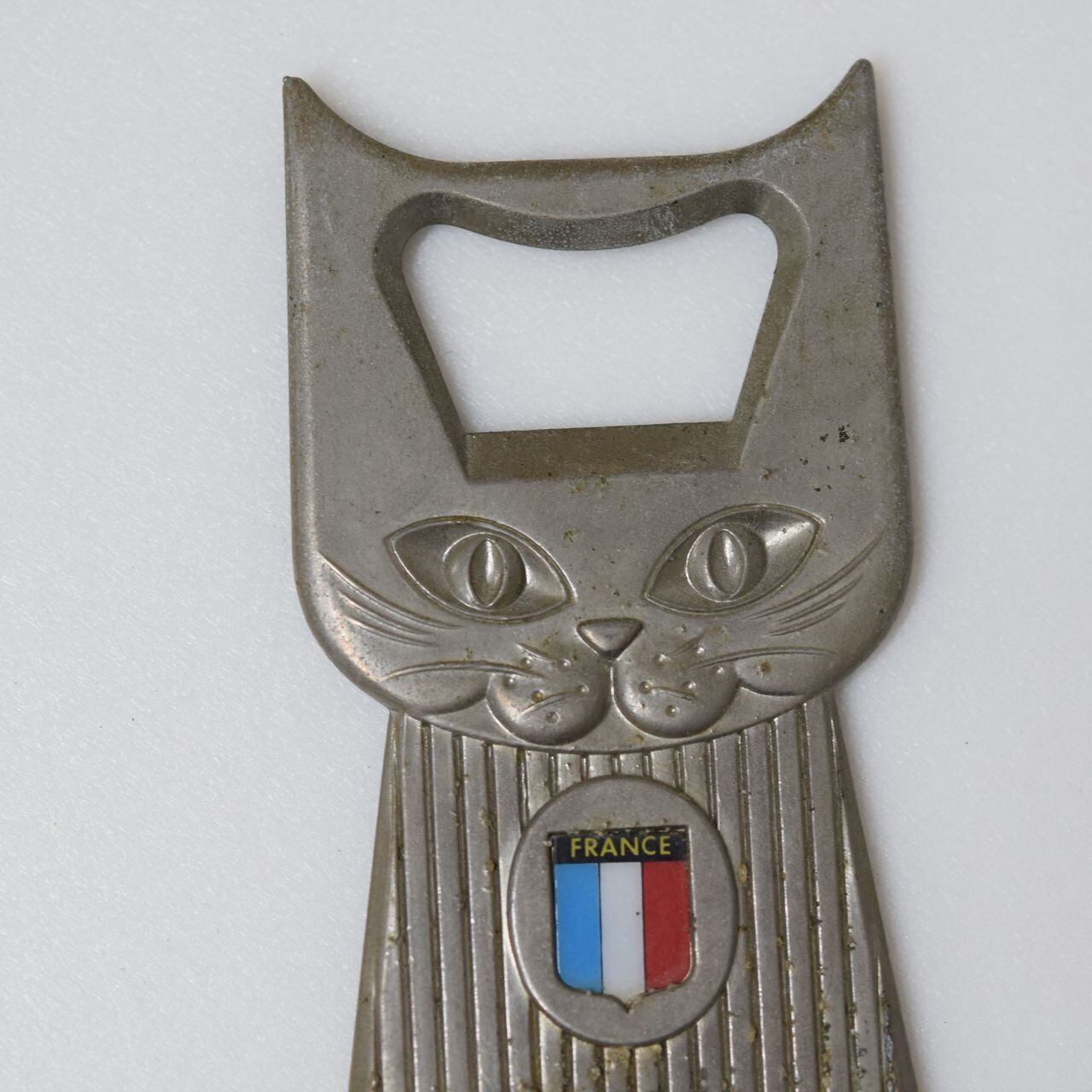フランスヴィンテージ かわいい猫の栓抜き 三色旗付き